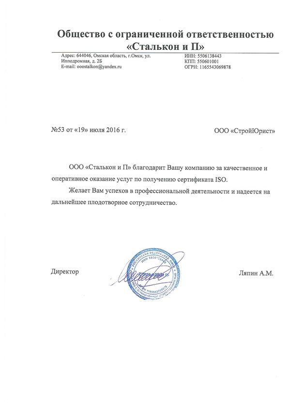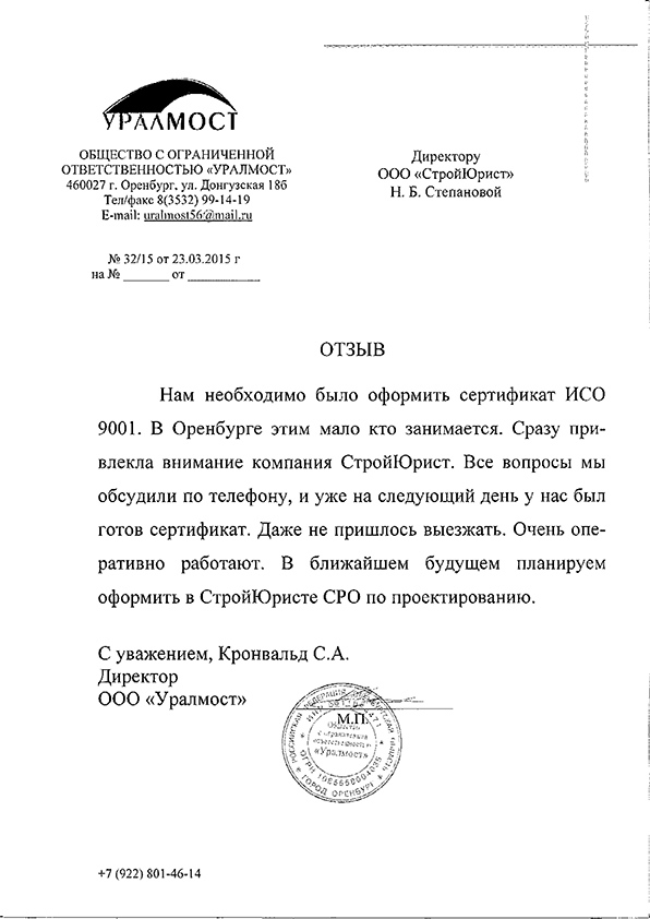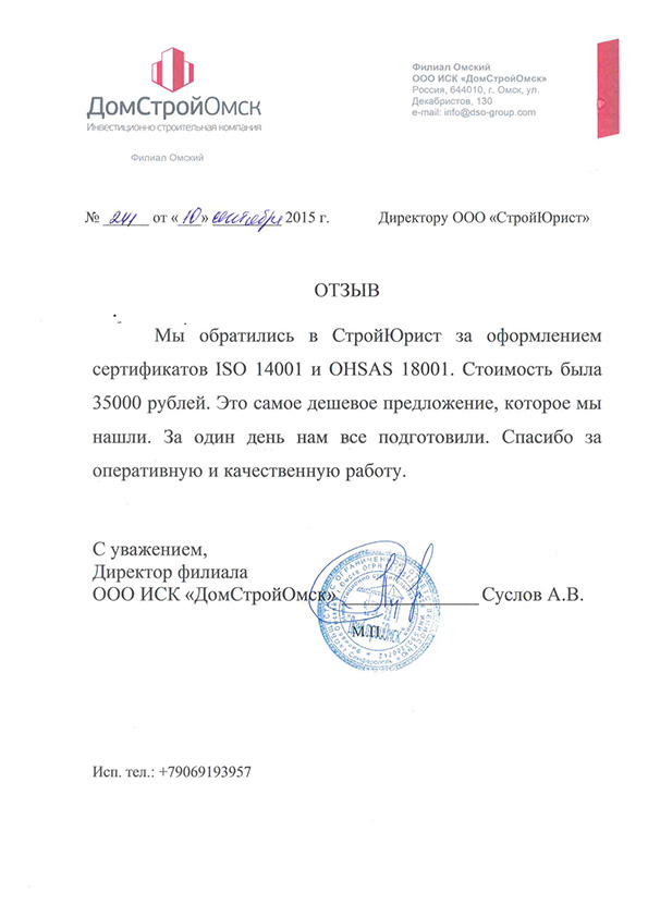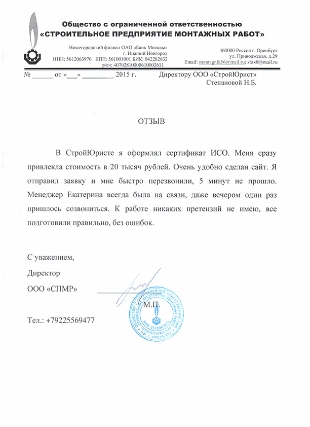 Отзывы клиентов "СтройЮрист" по ISO в Смоленске