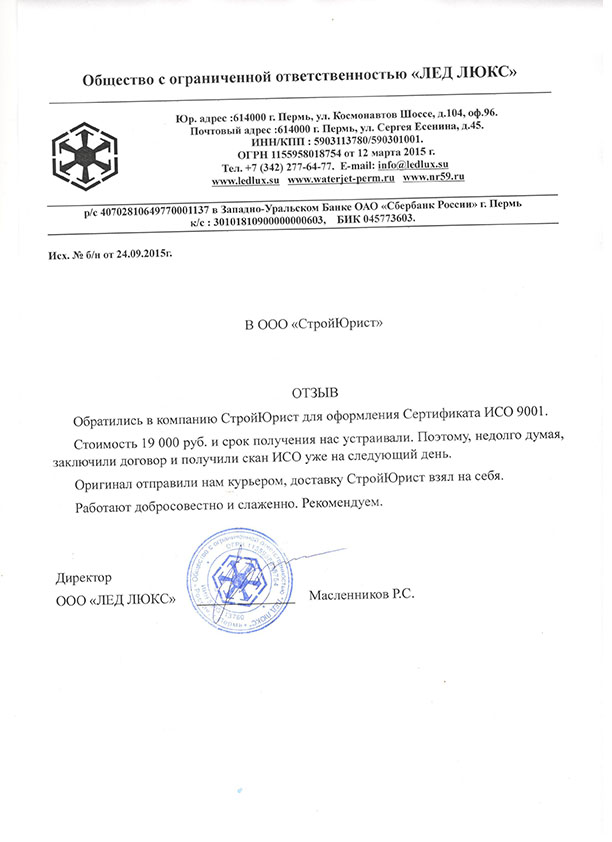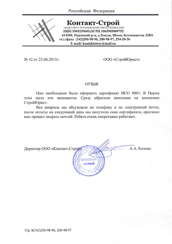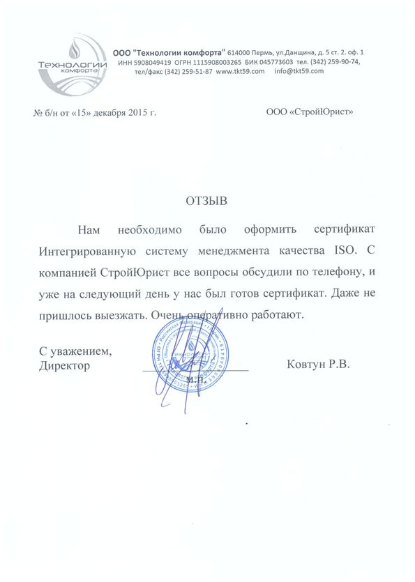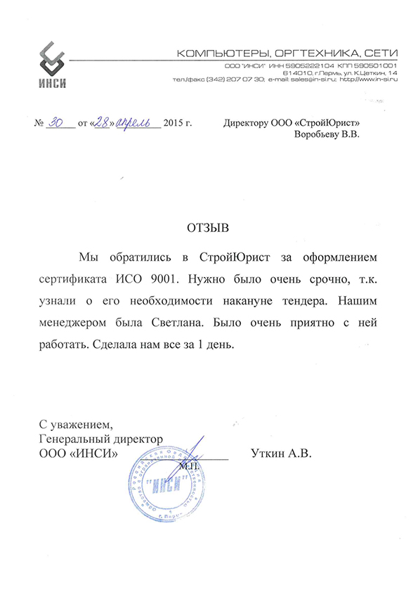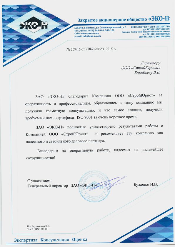 Отзывы клиентов "СтройЮрист" по ISO в Смоленске