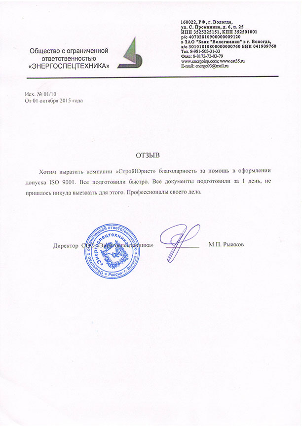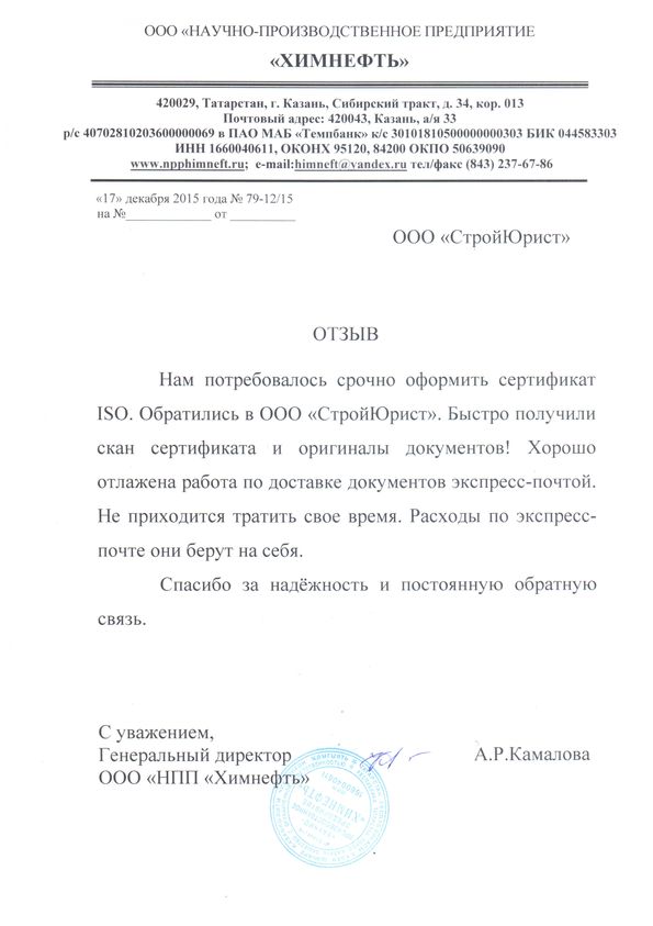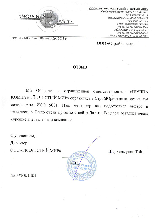 Отзывы клиентов "СтройЮрист" по ISO в Смоленске