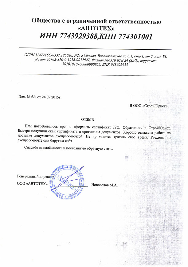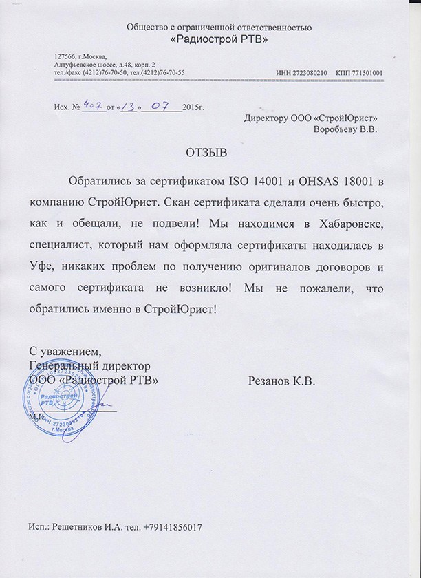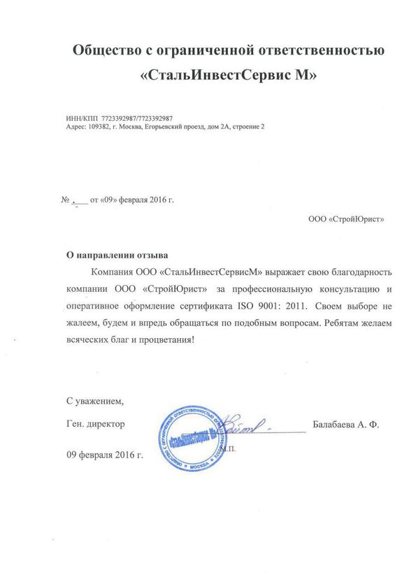 Отзывы клиентов "СтройЮрист" по ISO в Смоленске