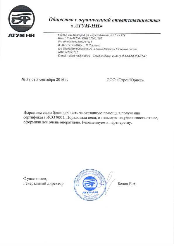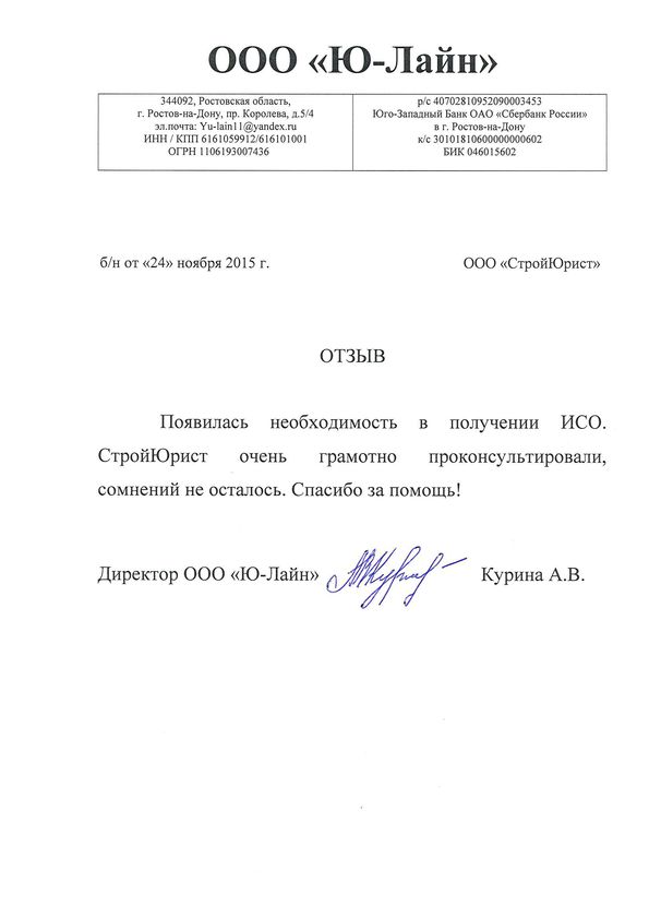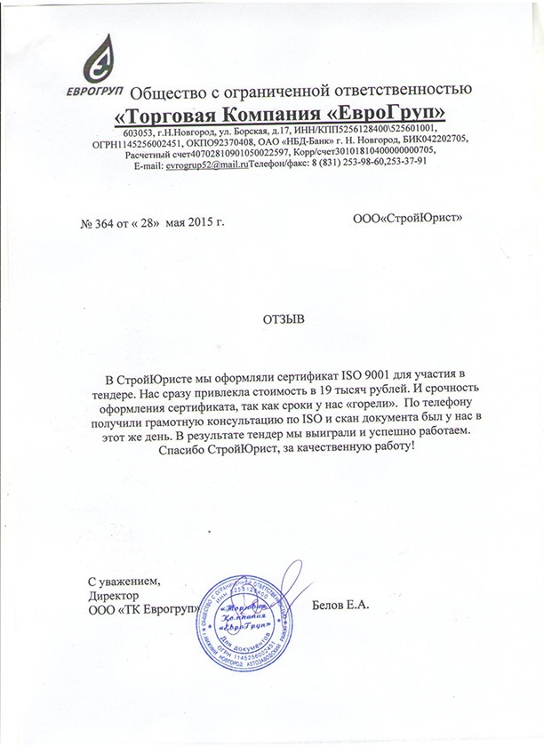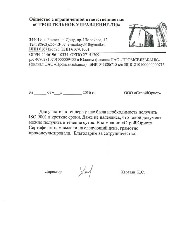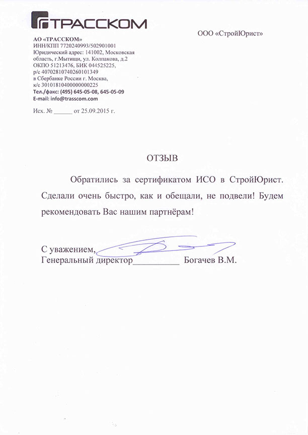 Отзывы клиентов "СтройЮрист" по ISO в Смоленске