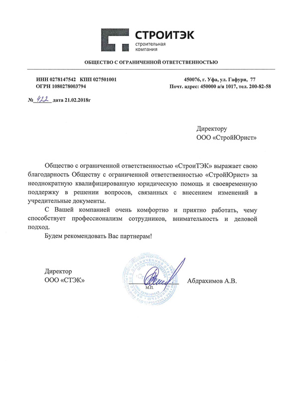 Отзывы клиентов "СтройЮрист" по регистрации фирм в Смоленске