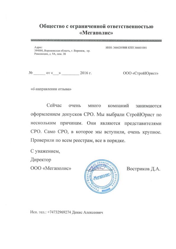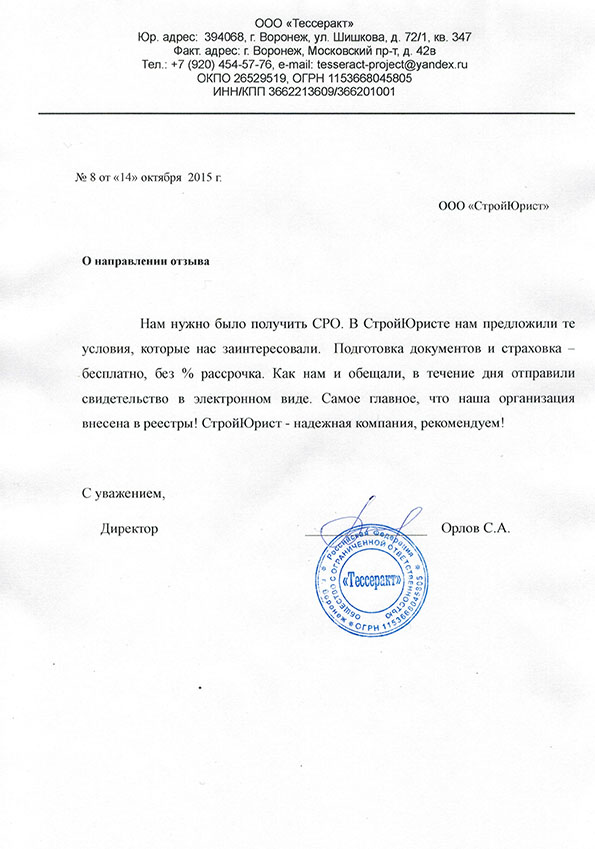 Отзывы клиентов "СтройЮрист" по вступлению в СРО в Смоленске