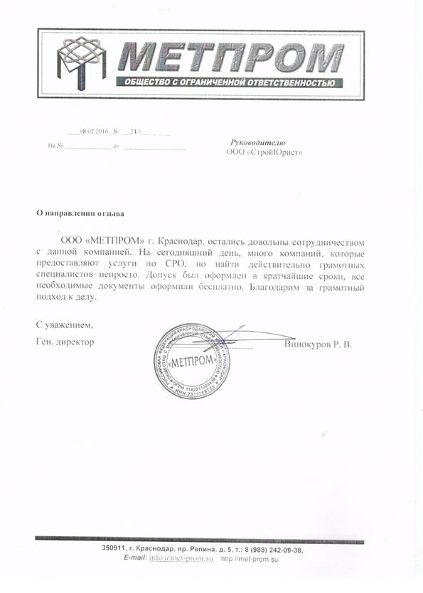 Отзывы клиентов "СтройЮрист" по вступлению в СРО в Смоленске