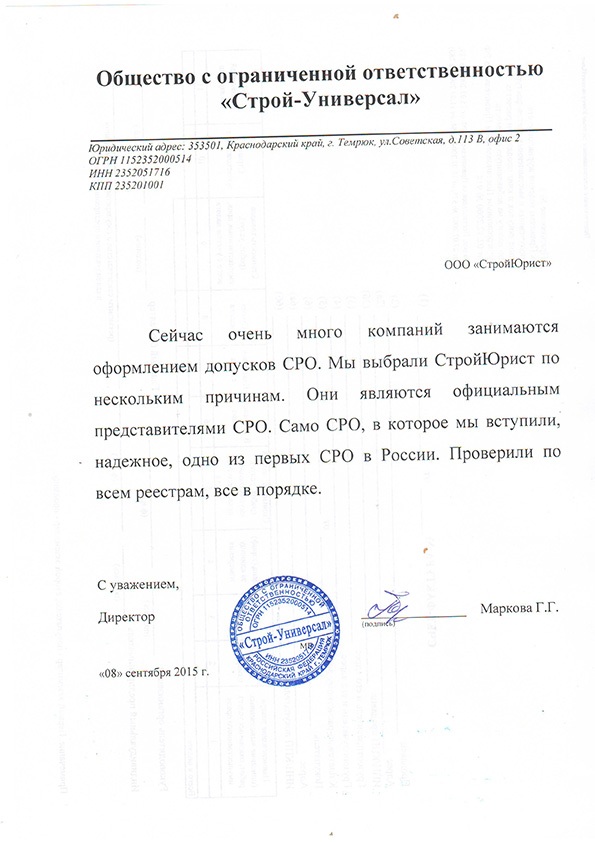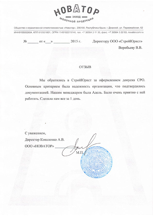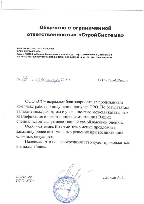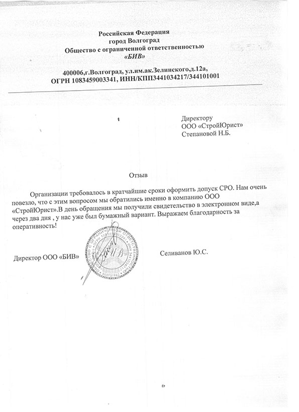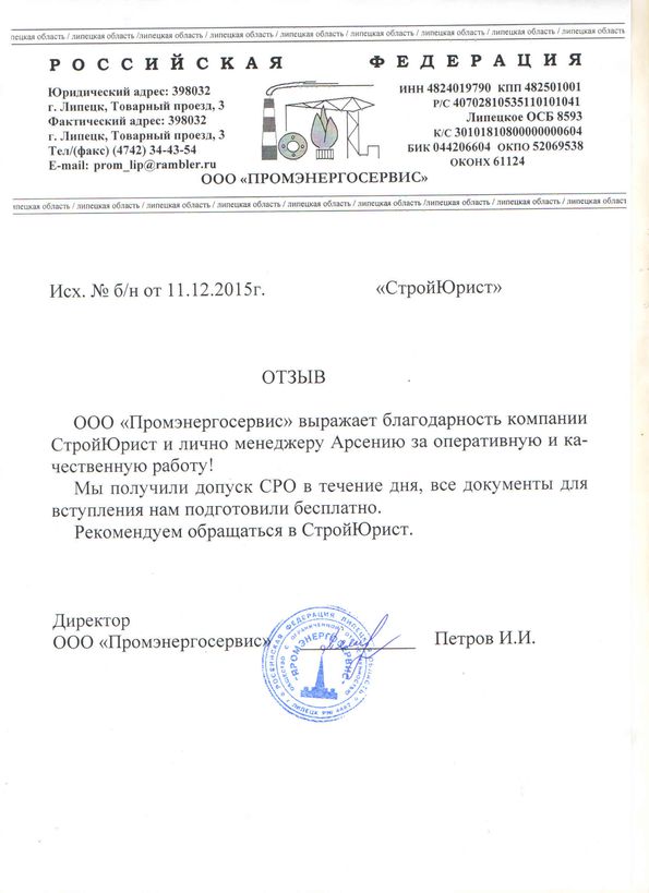 Отзывы клиентов "СтройЮрист" по вступлению в СРО в Смоленске