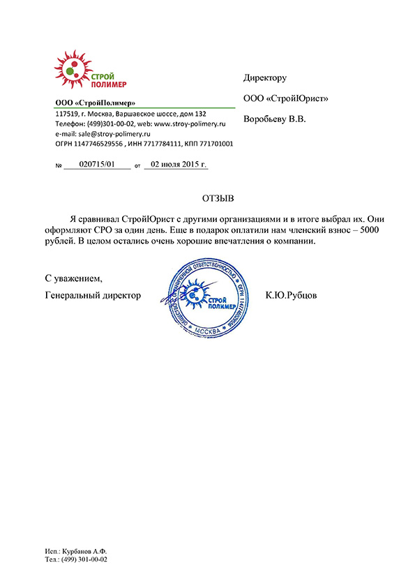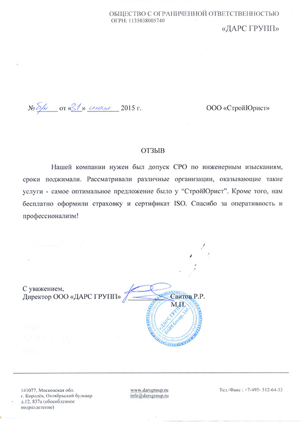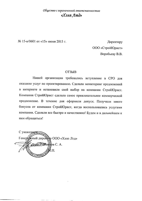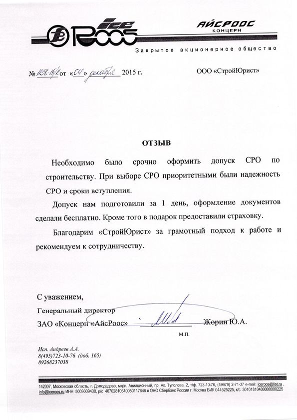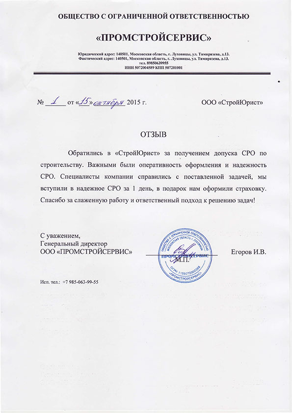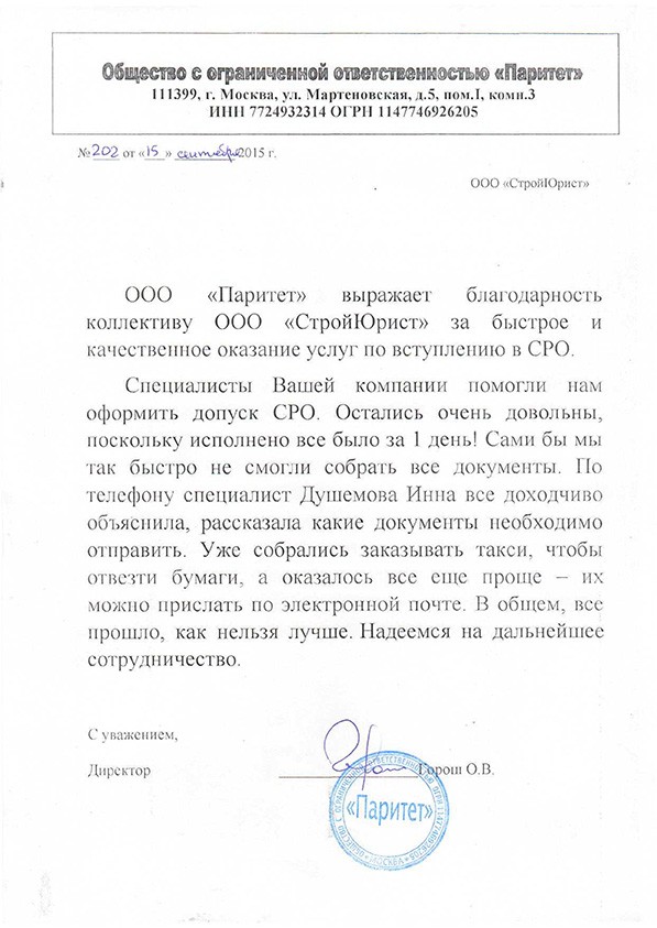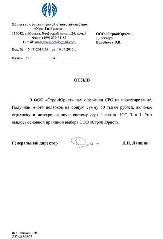 Отзывы клиентов "СтройЮрист" по вступлению в СРО в Смоленске