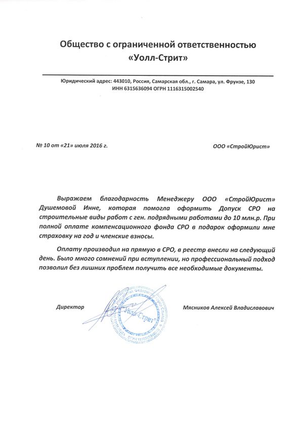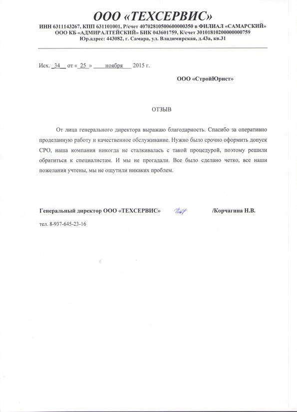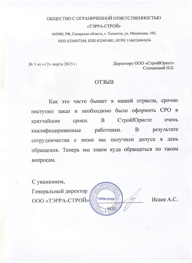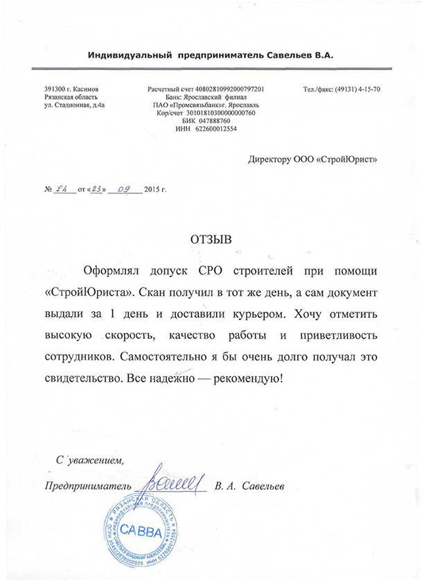Отзывы клиентов "СтройЮрист" по вступлению в СРО в Смоленске