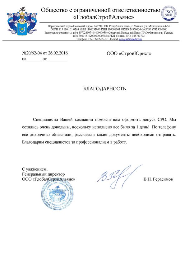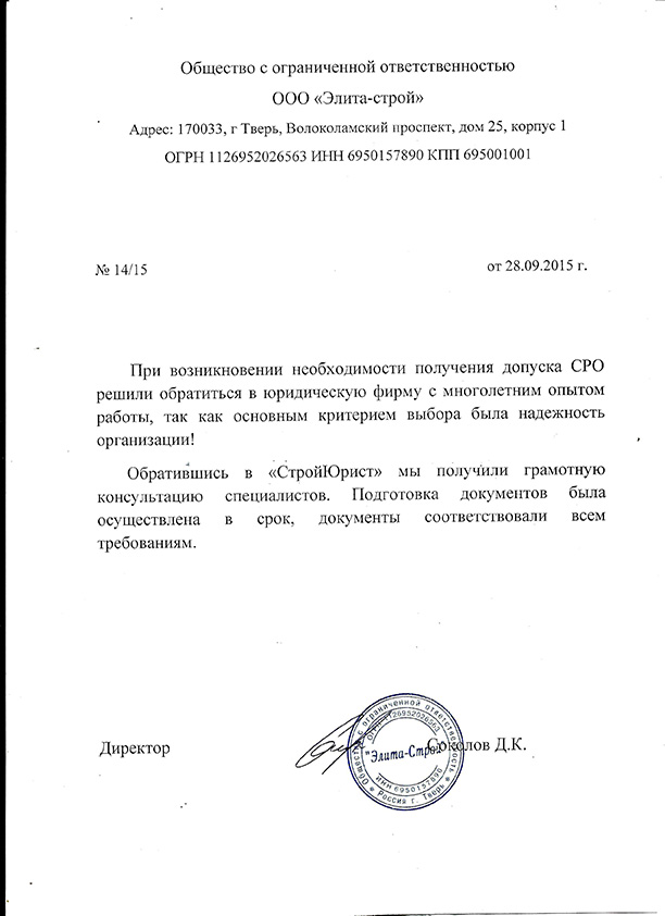 Отзывы клиентов "СтройЮрист" по вступлению в СРО в Смоленске