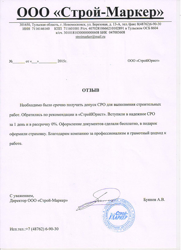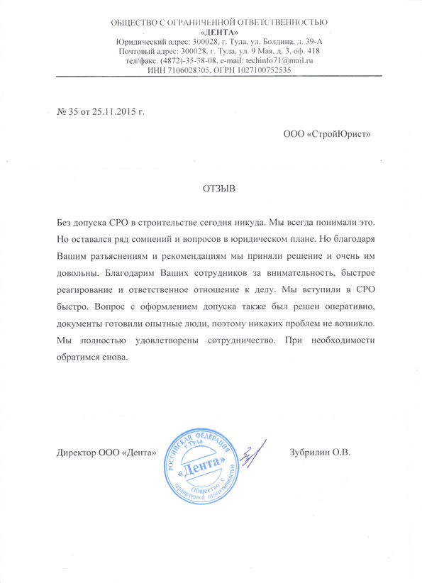 Отзывы клиентов "СтройЮрист" по вступлению в СРО в Смоленске