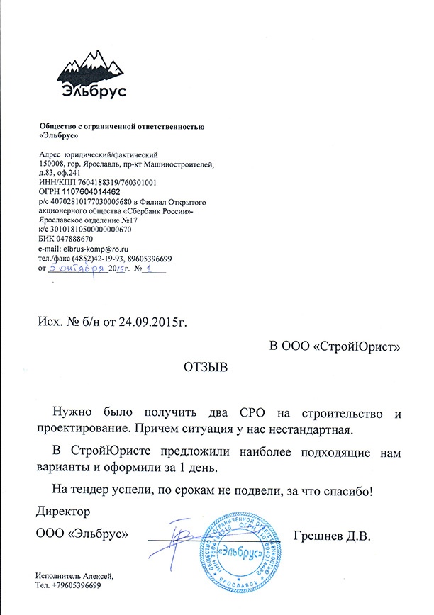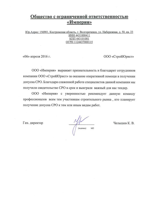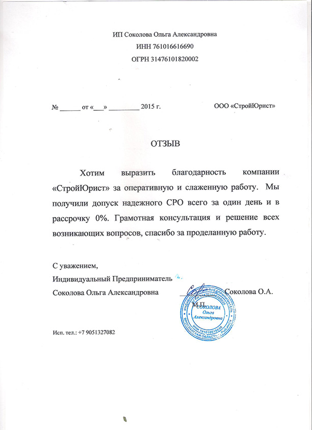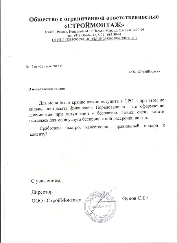 Отзывы клиентов "СтройЮрист" по вступлению в СРО в Смоленске