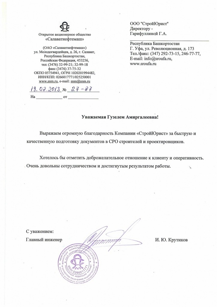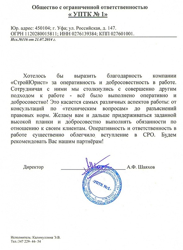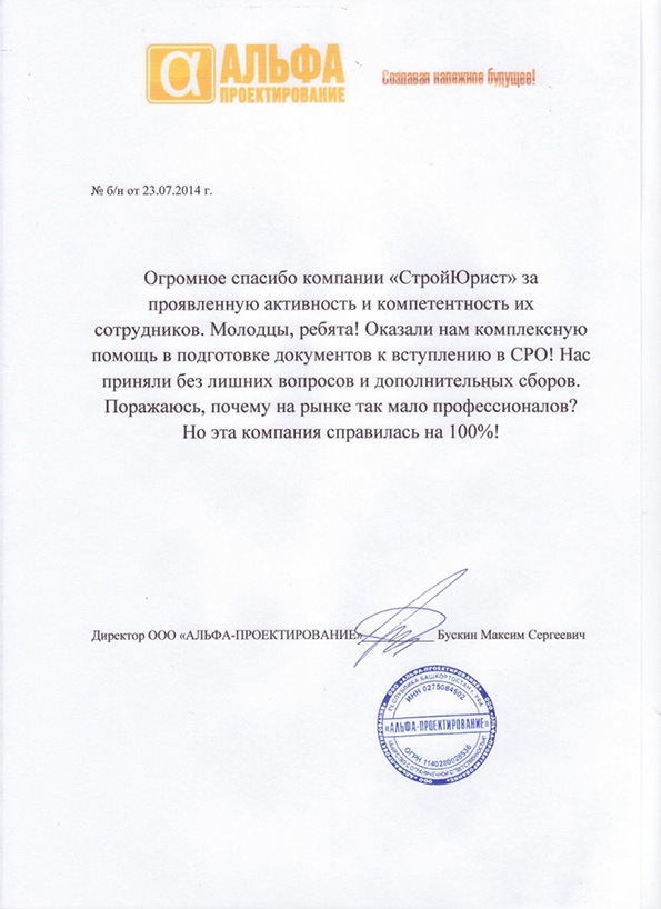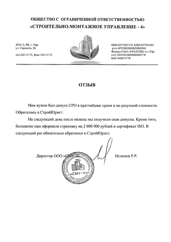 Отзывы клиентов "СтройЮрист" по вступлению в СРО в Смоленске