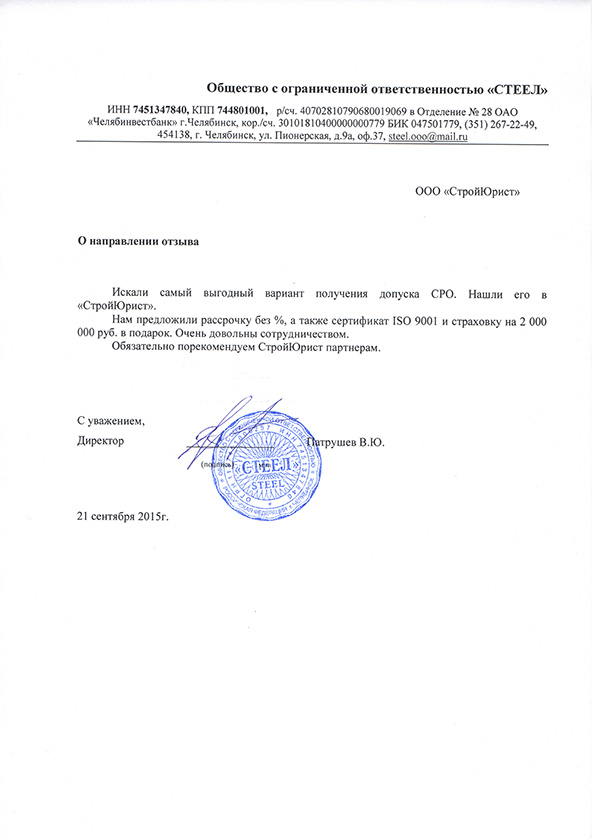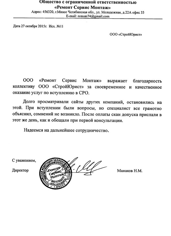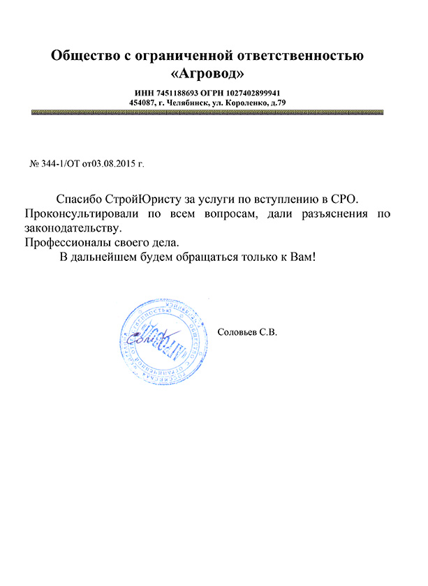 Отзывы клиентов "СтройЮрист" по вступлению в СРО в Смоленске