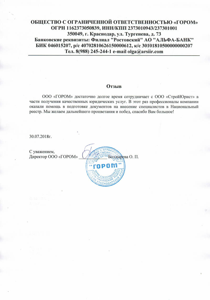 Отзывы клиентов "СтройЮрист" по вступлению в СРО в Смоленске