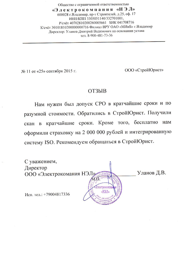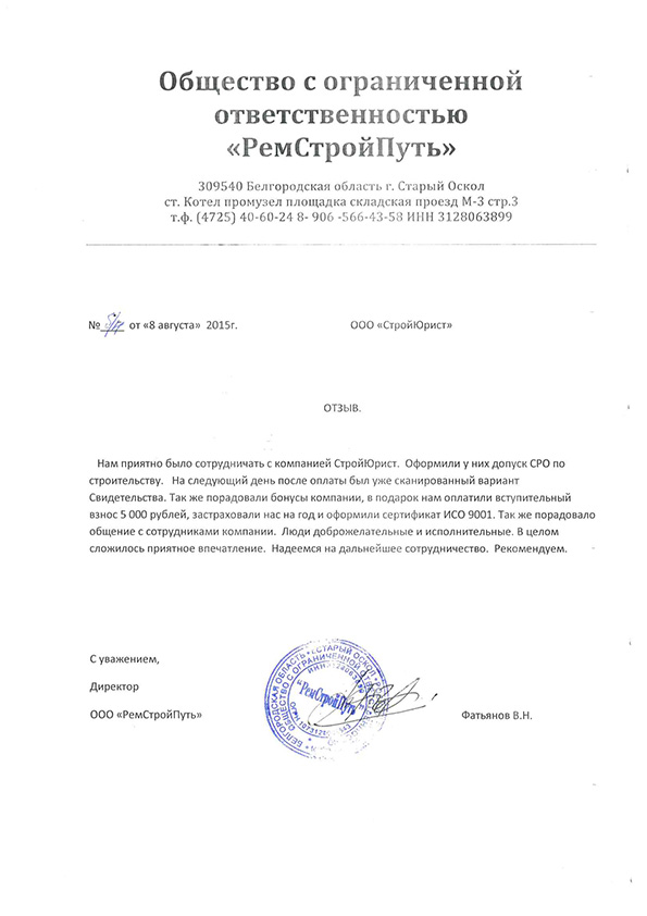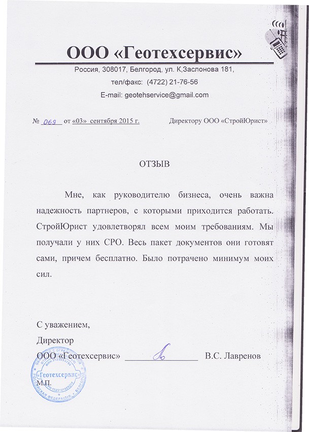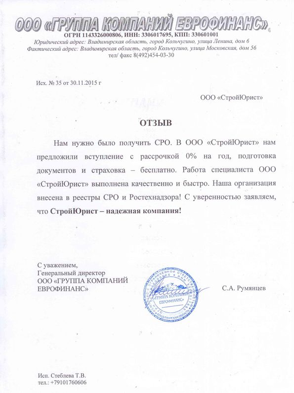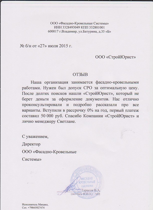 Отзывы клиентов "СтройЮрист" по вступлению в СРО в Смоленске