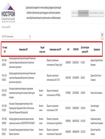 • реестр членов СРО;